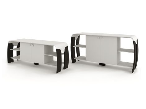 استفاده از صفحاتی ضخیم و بزرگ که دور تا دور آن برای زیبایی بیشتر نازک شده و رنگ می شوند، پایه هایی متنوع با روکش چرم دوخت دار و امکان ترکیب صفحه اصلی با رویه شیشه در رنگ های متنوع، بیانگر هم نشینی فوق العاده زیبا و عملکرد بالا در این سیستم است.